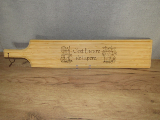 Planche Apéro Longue en Bambou Gravée "C’est l’heure de l’apéro"